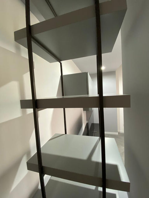 Completa la composizione una libreria Bifacciale Fortebraccio per chiudere la nicchia passante, senza ostruire il passaggio della luce naturale.